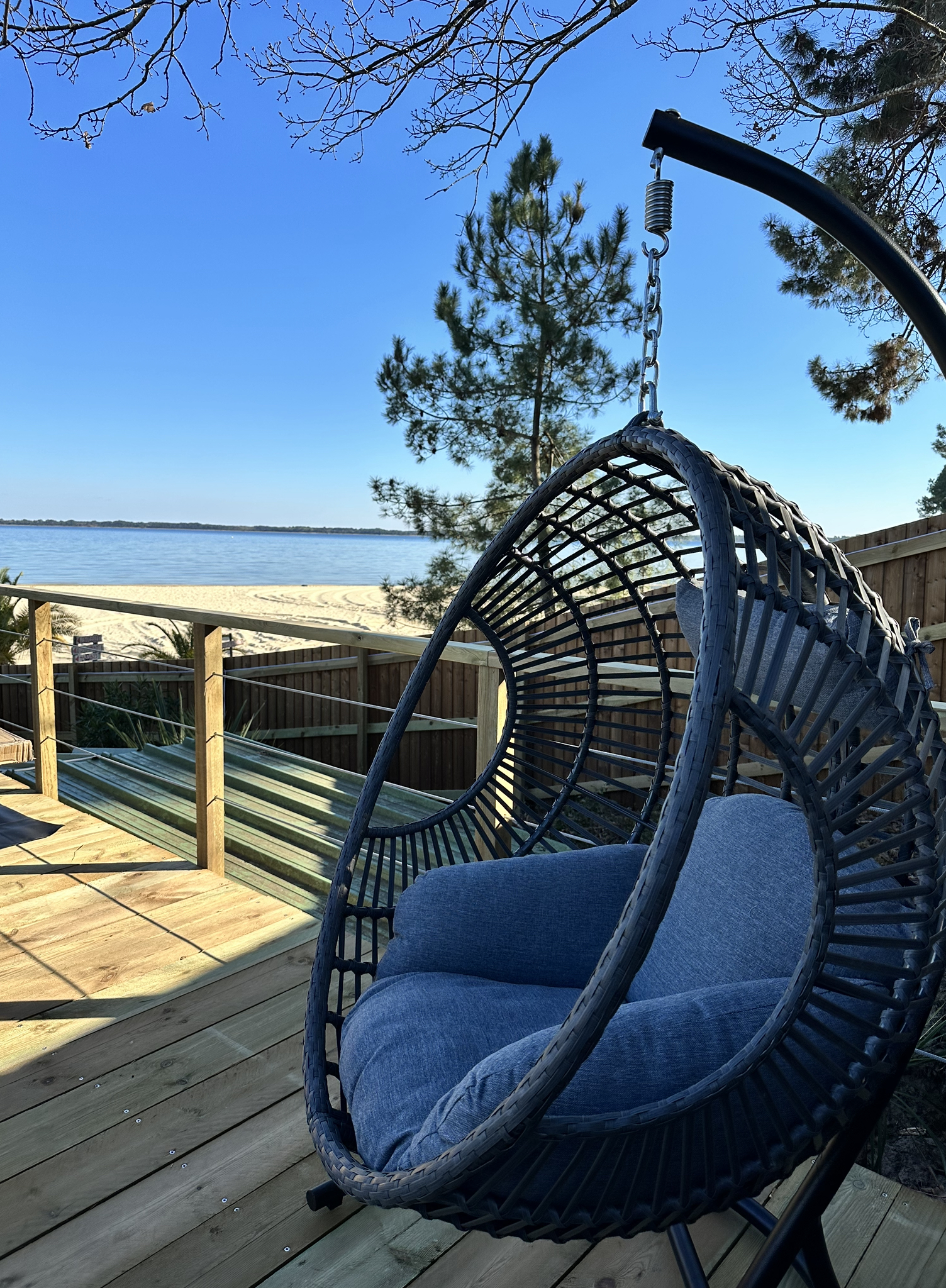 À l’étage, une magnifique chambre parentale perchée sous les toits équipée d’un écran plat à la décoration très cocooning vous offre une vue imprenable sur le lac et sa plage de sable fin. La nuit tombée, le spectacle des étoiles s’offre à vous…